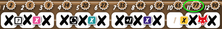 The number of your crossed fields in this area, as shown in the table in the brown area, indicates how much points you get.