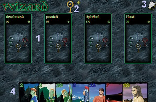 Wizard is a funny card play, where you have to predict as accurately as possible the number of his tricks. Sounds easy if there weren't the nasty fellow players...